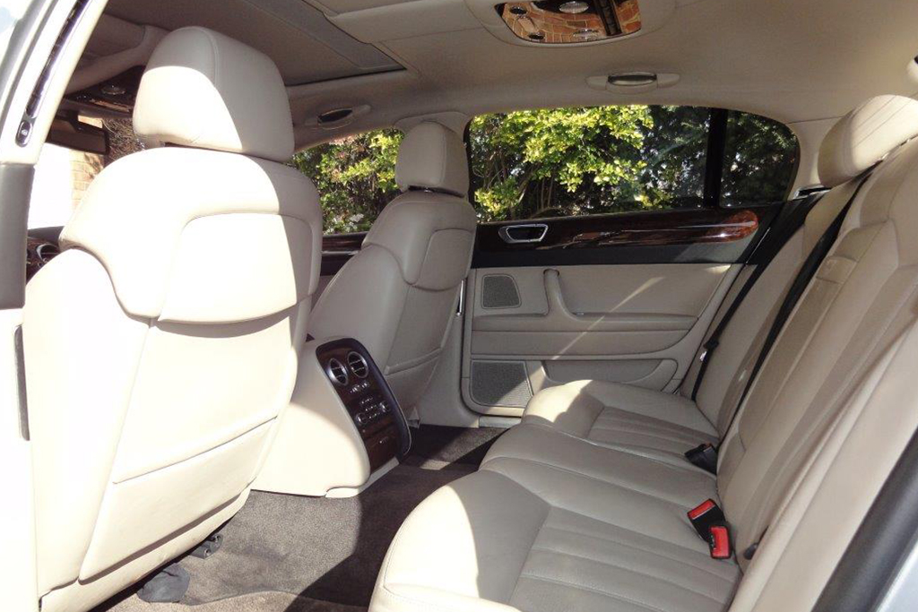 Our Bentley Flying spur is equipped with state-of-the-art digital in car sound system as well as the ability to adjust the climate settings, seat heating and ventilation from the front and rear. The spacious air-conditioned Bentley Flying Spur comfortable accommodated up to 4 passengers excluding your chauffeur. This makes it the perfect wedding day car as it has a generous amount of leg room able to fit any wedding gown. Our Bentley Flying Spur is definitely the ideal car for a big occasion when trying to make a statement.